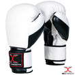 Leather Boxing Gloves Sparring Boxing Gloves White/ Black With Wrist Support | MaxStrength
