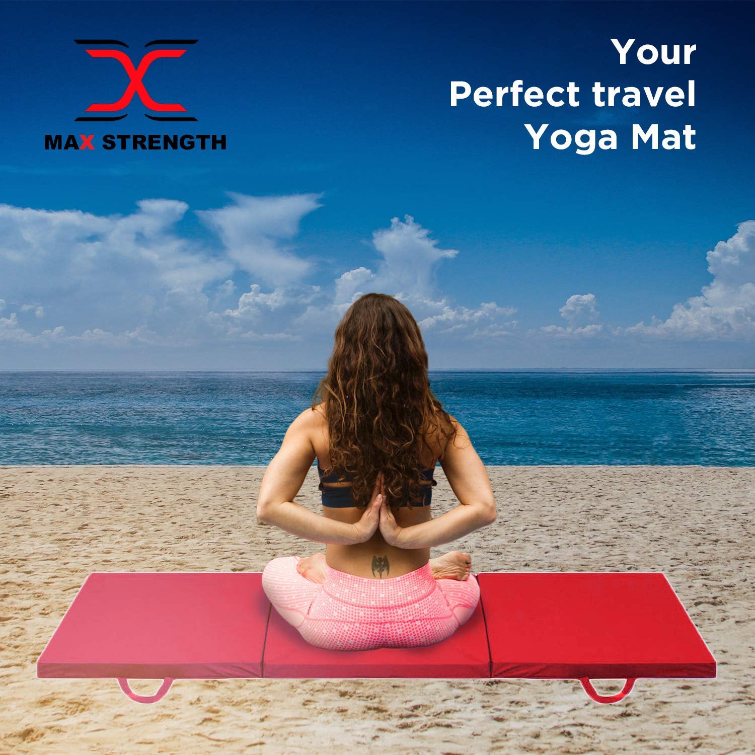 Max Strength Tri-Folding yoga mats are a classic yoga mat for floor exercise that comes with great features such as sewn-in handles, PU leather cover, and Velcro straps on each end of the mat that makes it easy to perform several physical activities such as gymnastics yoga dancing light stretching wrestling martial arts and general exercise. Our training mat is designed for schools, clubs, camps, and team word or individuals household purposes. It is a fitness mat for all ages, kids’ adults and seniors.